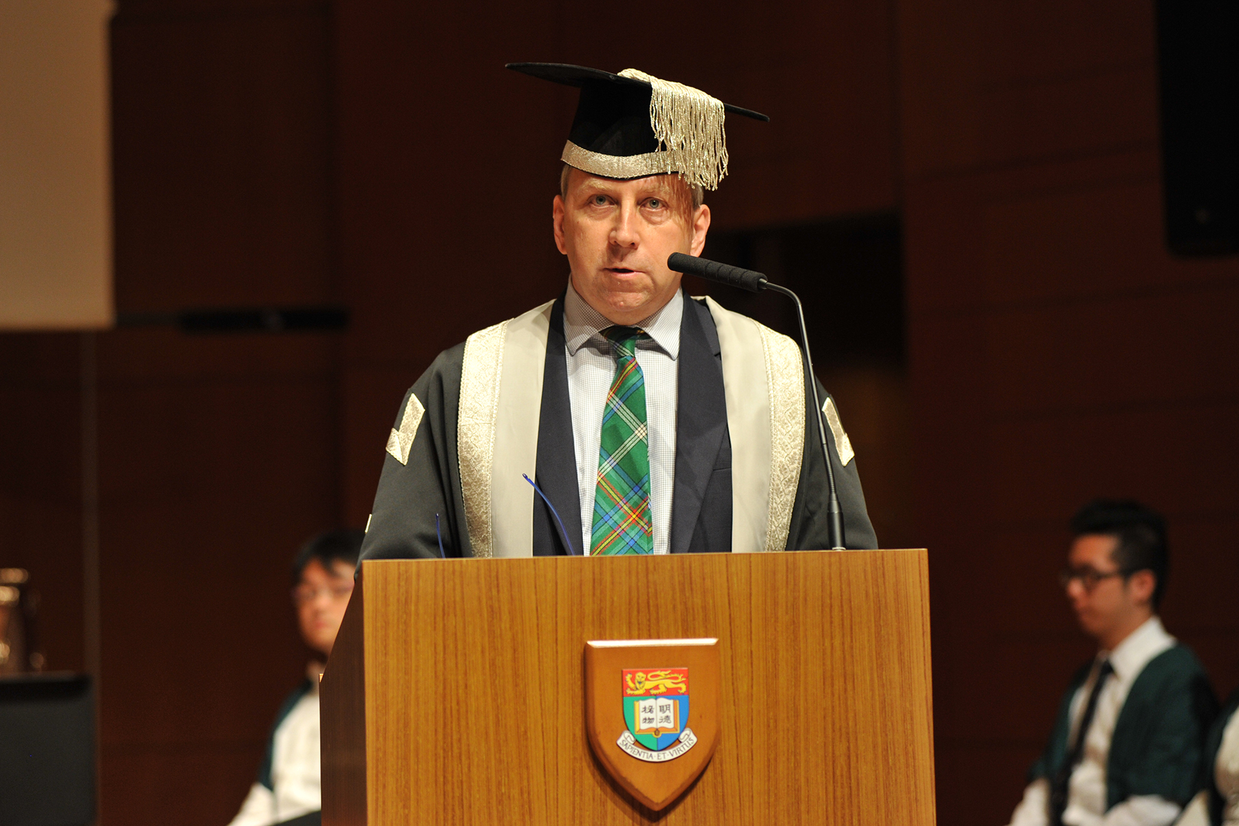 「今天,你們在香港大學都被視為成年人。我們把你們當成年人看待,你們一定要努力,成為正直具良知﹑負責任的港大人和社會成員。我們會捍衛你們的言論和表達意見的自由,同時也期望你們對自己的行為負責。」馬斐森校長希望學生能了解游說和商討談判的力量,致力尋求共識,在無法達成共識時,接納彼此的差異﹑和而不同。