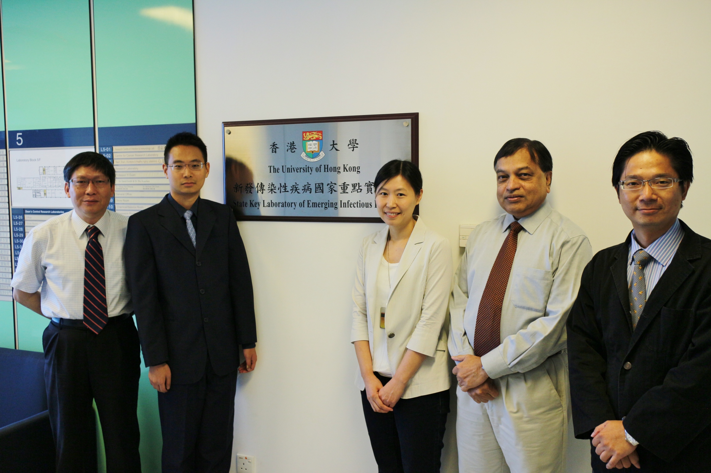 香港大學李嘉誠醫學院公共衞生學院研究團隊,成員包括(左起): 於崇光基金教授(病毒學)管軼教授、副研究員張栢恆博士、助理教授嚴慧玲博士、譚華正基金教授(醫療科學)、公共衞生學院講座教授(病毒學)及院長裴偉士教授及副教授潘烈文博士。