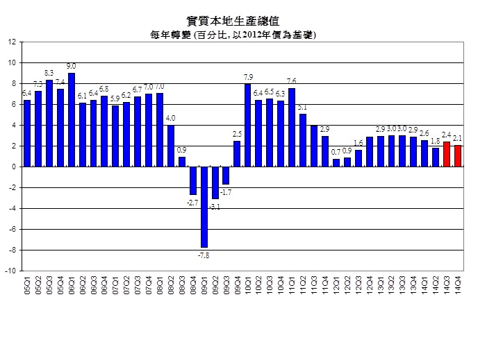 香港大學經濟學教授王于漸指出:「美國經濟重返軌跡,於第二季強力反彈4.6%。由於低息環境與中國持續增長,預期香港經濟會維持適度的增長率。下半年實質經濟增長為2.2%,與上半年相若。因此,預計全年經濟增長為2.2%。實質經濟增長主要由本地需求所帶動,其中,1.8百分點增長由本地需求帶動;0.4百分點增長則由外部需求帶動。」