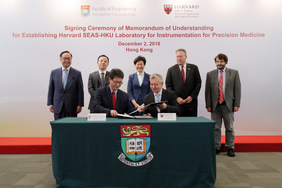 香港大學(港大)工程學院與哈佛John A. Paulson工程與應用科學學院(哈佛工程與應用科學學院)於今天(12月2日)簽署合作備忘錄,共同成立精準醫學儀器實驗室。
