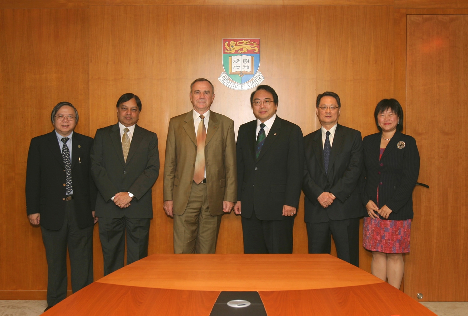 法國榮譽軍團勳位大臣Jean-Pierre Kelche將軍專程訪問港大。(由左起)