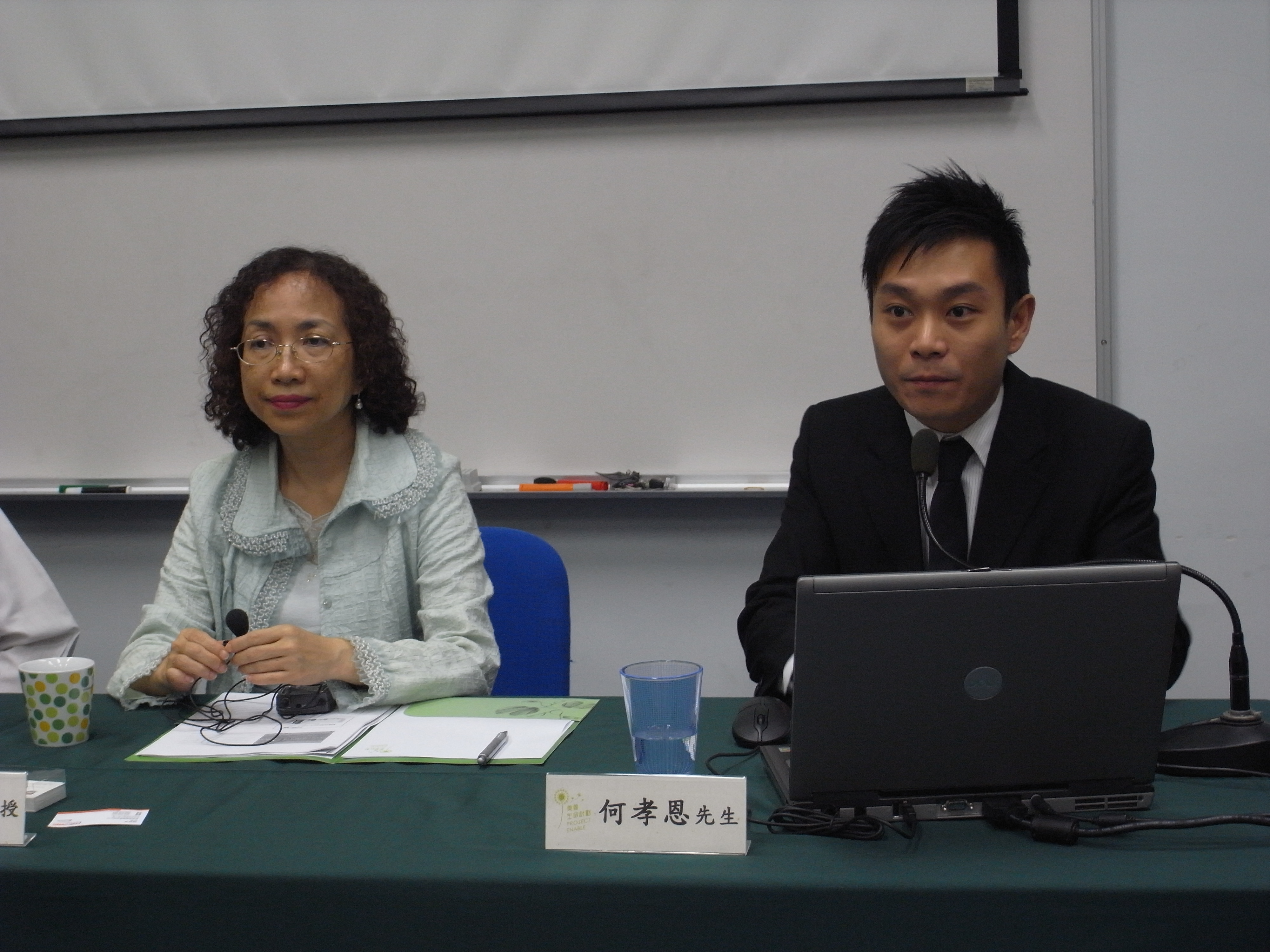 陳麗雲教授 (港大行為健康教研中心總監) 及何孝恩先生 (港大行為健康教研中心研究主任) 梁國良先生及梁余健華女士分享他們應付喪親哀痛的經歷,梁先生父親去年因患癌症去世。 |