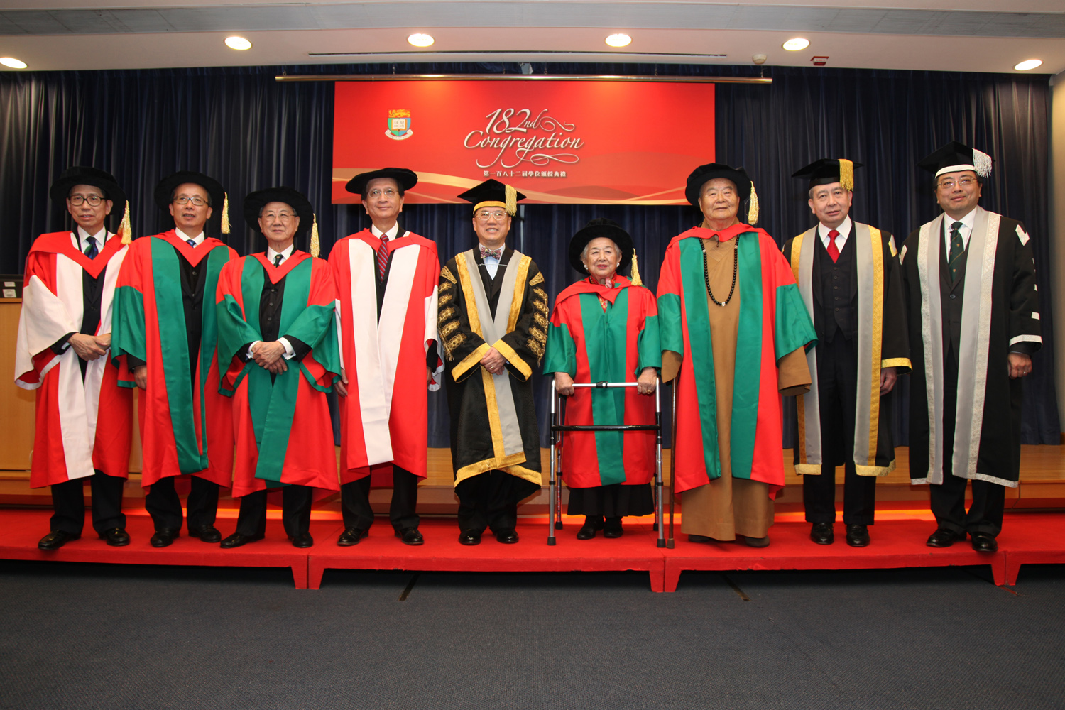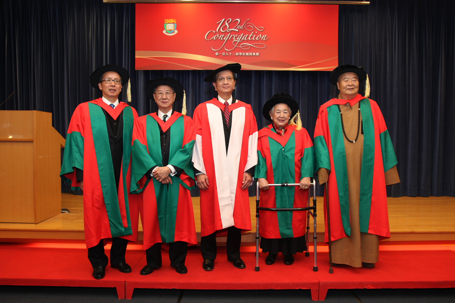 香港大學(港大)於今天(星期四)假陸佑堂舉行第182屆學位頒授典禮,向五位傑出人士頒授名譽博士學位。頒授典禮由港大校監曾蔭權博士主禮。 港大名譽博士學位是頒授予對大學、社會或學術方面有傑出貢獻;以及對促進社會及全球的文明、社會及文化進步方面有建樹的人士。
