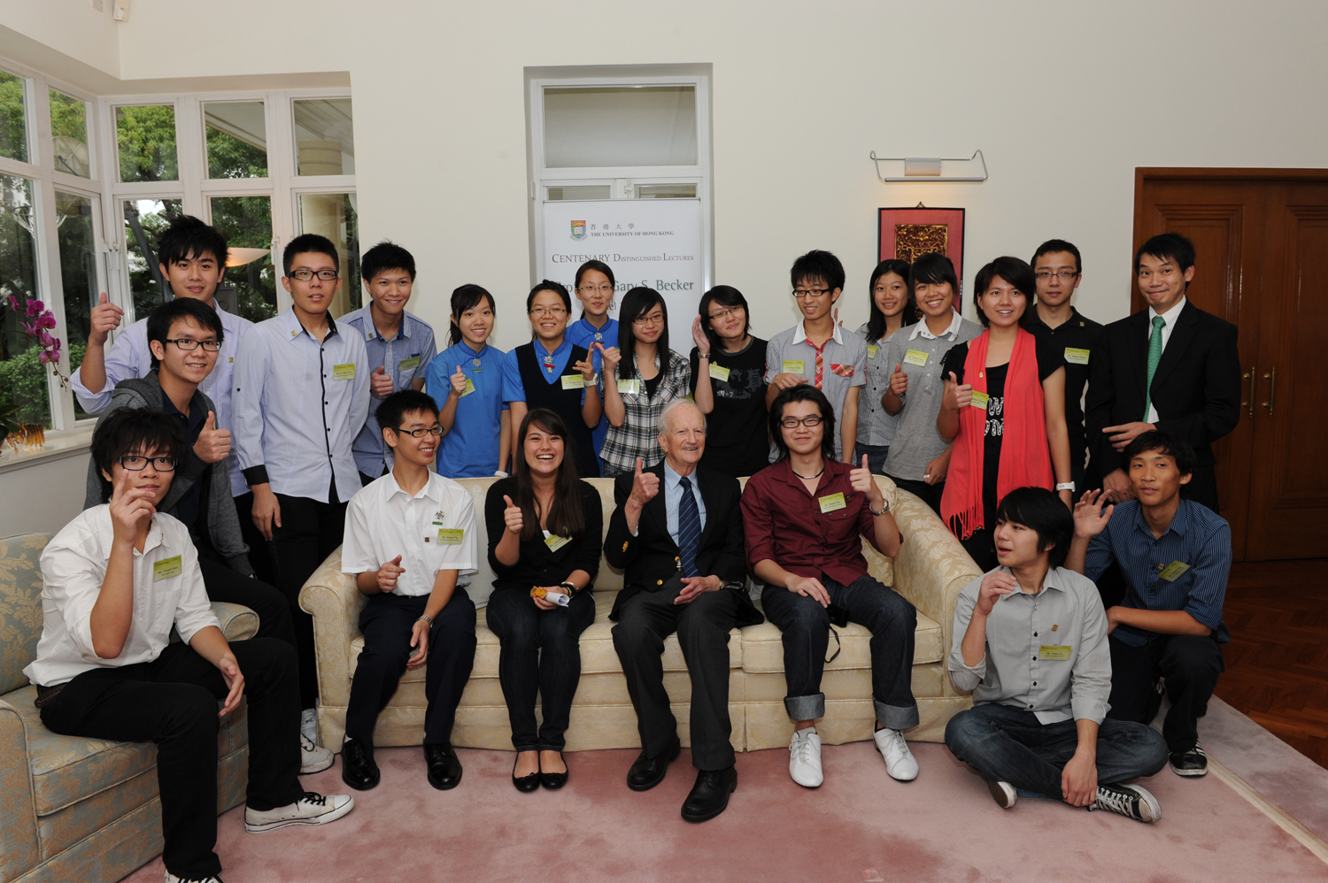 | 20名中學預科生和香港大學學生今天(9月22日)參加香港大學舉辦的「樂膳‧好師 與諾貝爾學人對談」活動,與諾貝爾經濟學獎得主加里‧貝克爾教授(Professor Gary S Becker)見面,一邊共進午膳,一邊輕鬆交流。