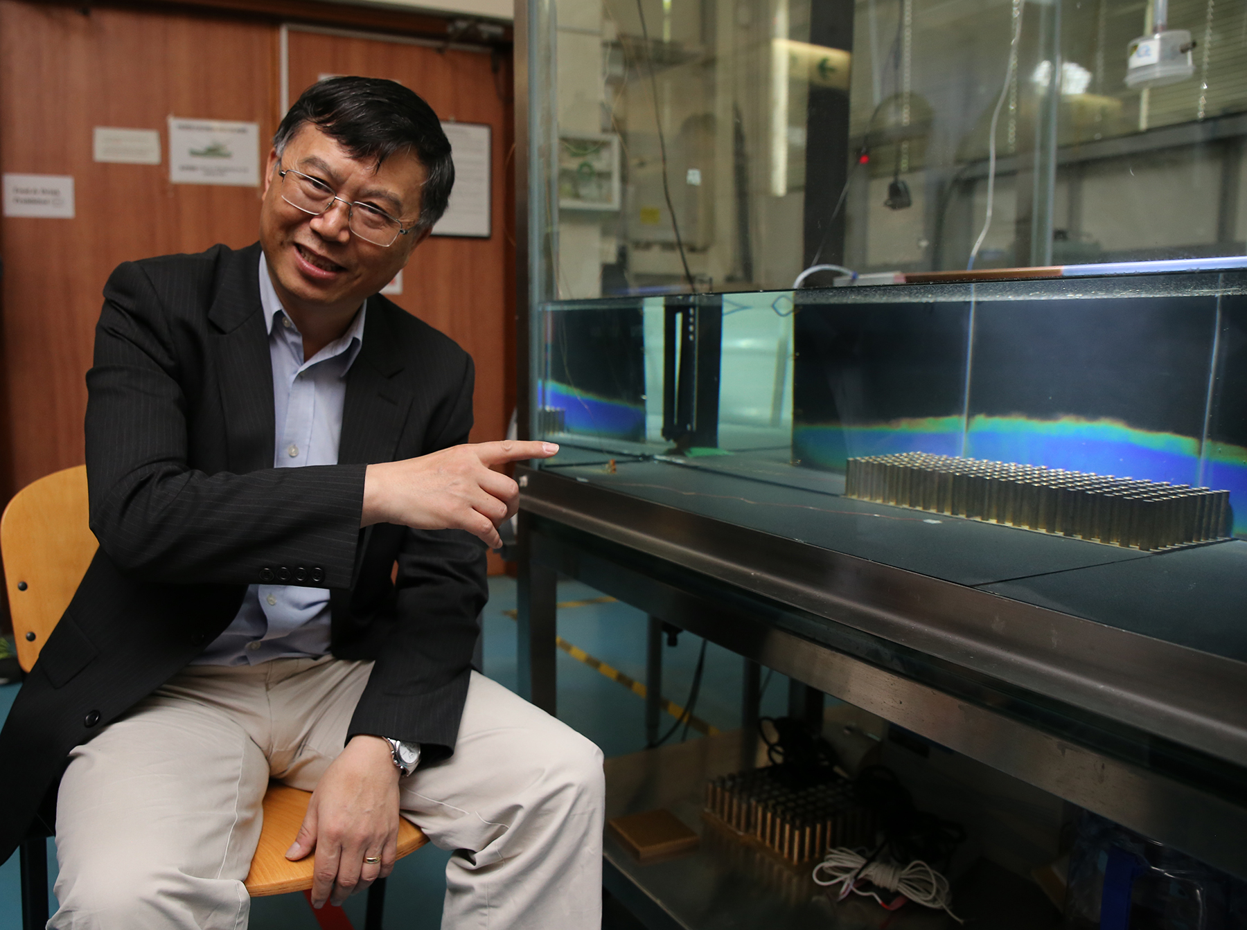 Professor Li Yuguo, Head of HKU Department of Mechanical Engineering, has carried out studies using water tank modelling of an ideal urban dome to identify the physics of wind.