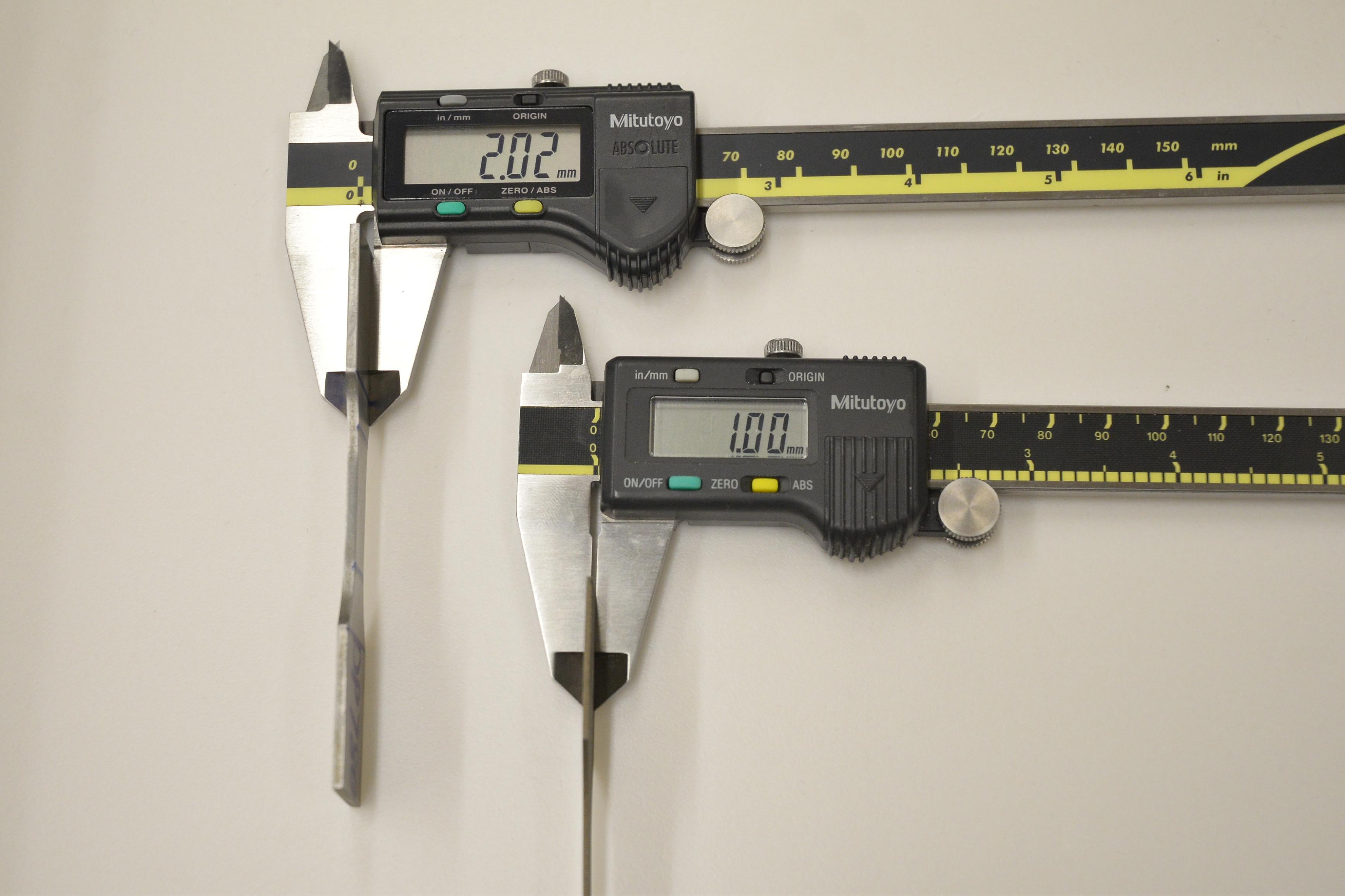 The new generation of automobile steel (right) is only half as thick (1.00mm) as the steel now used in automobiles (left, 2.02mm), while offering the same strength and ductility