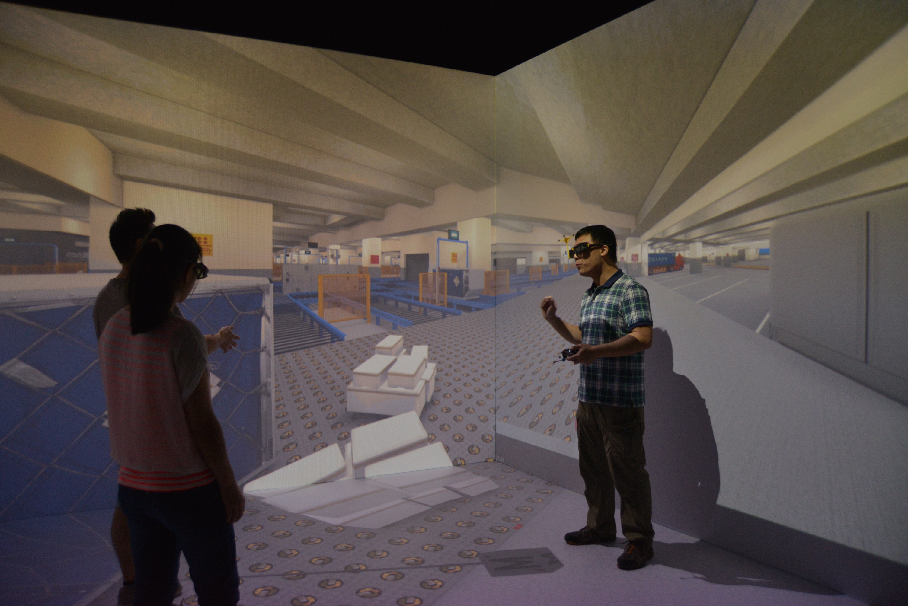 The imseCAVE has already been deployed in the simulation of very large and complex logistics systems, including the automated air cargo terminals and port container terminals. It was used to develop virtual reality-empowered training systems and programmes for ramp operations in Cathay Pacific Services Limited (CPSL). Such simulations provide a means for management, engineers and users to study their operations without the need to physically disturb the normal operations of these facilities.