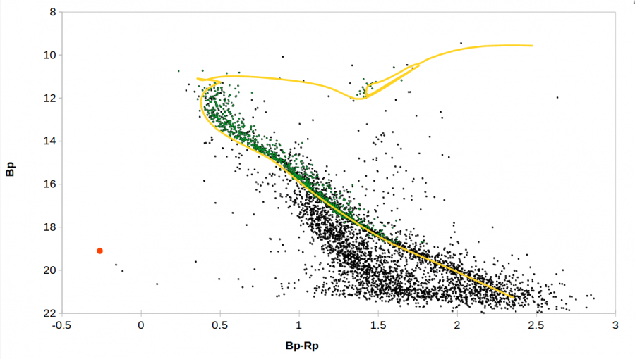 Because this “grand old dame” lives in a stellar cluster, this environment enables the team to determine powerful additional parameters not possible for the general Galactic PN population. These include estimating the mass of the PN’s progenitor star when it turned off the stellar main sequence, as derived from the observed properties of the thousands of stars in the cluster when plotted in a so-called colour-magnitude diagram. The team can also estimate the residual mass of the central star that ejected the PNe via theoretical isochrones and observed properties of the hot, blue central star. As a result, they figured how massive the star was that ejected the PN gaseous shell when it was born and how much mass is now left in its residual, contracting hot core (which is already a so-called ‘White Dwarf’ star). Fresh “Gaia” data for the hot blue, PN central star also provide a good distance estimate allowing the PN’s actual size at this extreme age to be determined as 3.2pc (parsec, an astronomical unit of measure for interstellar space with 1pc equals to 3.26 light-years) in diameter – unsurprisingly perhaps also at the extreme end of known PN physical sizes.