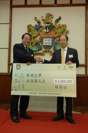 The University of Hong Kong (HKU) launched the "First-in-the-Family Education Fund" (FIFE Fund) and announced a generous donation of HK$1M per year for five years from Mr Yeung Kwok Keung, Chairman of Country Garden Holdings Ltd at a press conference today.
