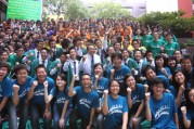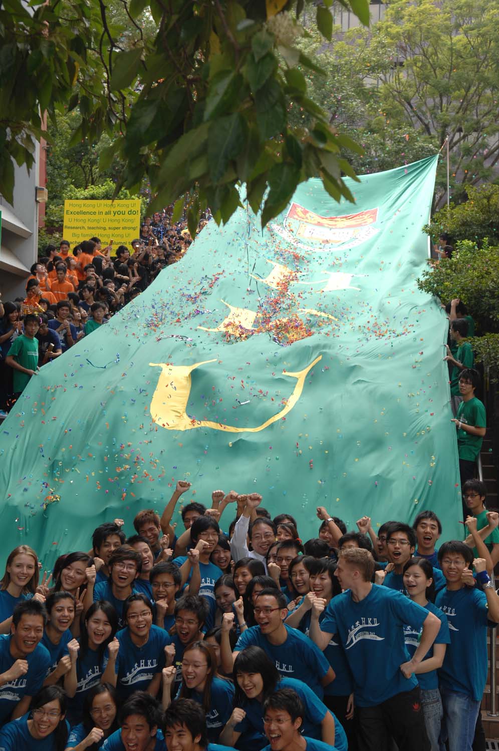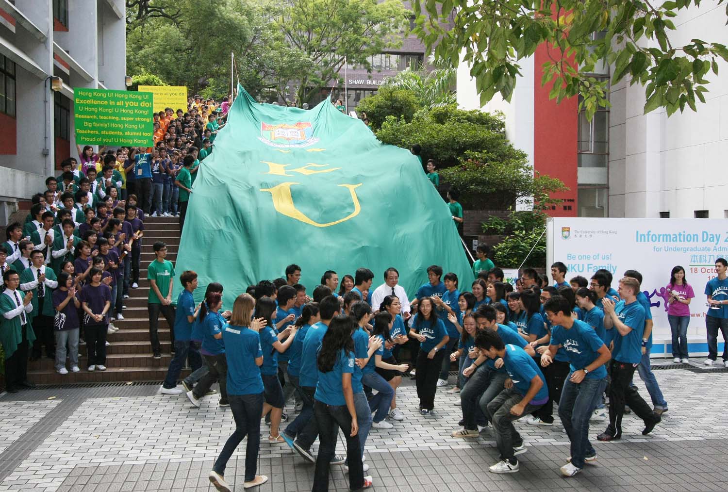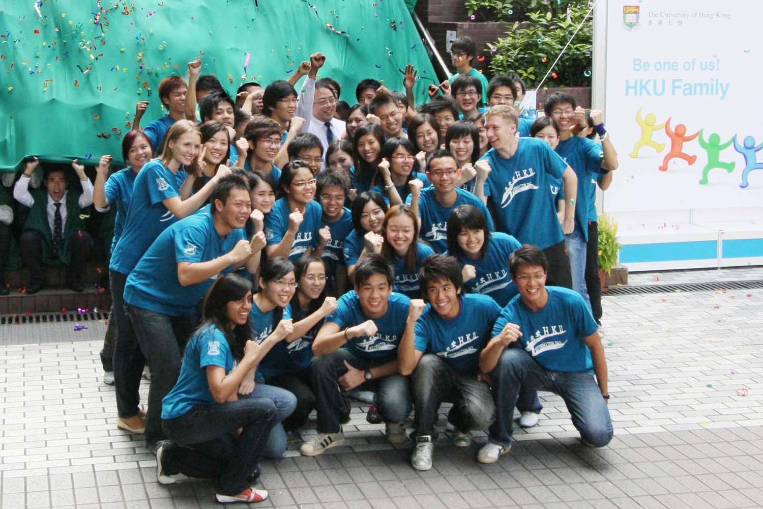 The Information Day for Undergraduate Admissions organised by The University of Hong Kong (HKU) today (October 18) attracted over 23,000 secondary school students, as well as their parents and teachers. They visited HKU campus to learn more about the various programmes it offered, to visit the facilities and hostels of the university, and to have a taste of various spectrum of university life. HKU Vice-Chancellor Professor Lap-Chee Tsui launched the event with the theme "Be One of Us - HKU Family". In the presence of senior management members and various Deans, Professor Tsui led some 500 local and international students in an energetic Cheering Demonstration at the opening ceremony. "Cheering" is not only a culture and tradition of HKU halls for decades, but also a way of strengthening the solidarity spirit among hallmates and fellow students.