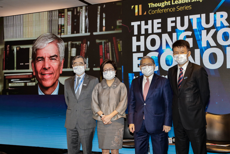 With the fourth wave of COVID-19 subsides and the availability of vaccines, the economy of Hong Kong is expected to rebound in the second half of 2021. It is time for Hong Kong to search for a way out to the current economic dilemma and rethink its future development and positioning. Jointly organised by HKU Business School and Hong Kong Institute of Economics and Business Strategy (HIEBS), the ‘Thought Leadership Conference Series: The Future of Hong Kong Economy’ was held today and has addressed a broad range of critical issues relating to economic development and government policies in Hong Kong, aiming to facilitate the discussion on rejuvenating the economy and make an impact to the society.