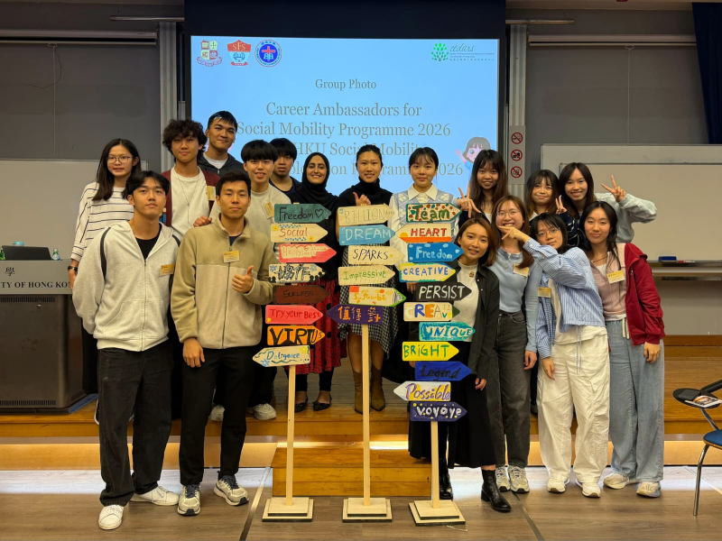 In a significant stride toward enhancing student leadership and community engagement, HKU concluded its first Career Ambassadors for Social Mobility Programme 2026 (Programme) from 13 January to 7 March 2026. Organised by the Centre of Development and Resources for Students (CEDARS), this groundbreaking initiative aims at empowering HKU students as career mentors for leading, inspiring, and driving positive social impact through career exploration activities designed for secondary school students. The Programme brought together 60 participants including HKU Student Career Ambassadors and alumni, secondary school teachers and students, employers and industry partners.