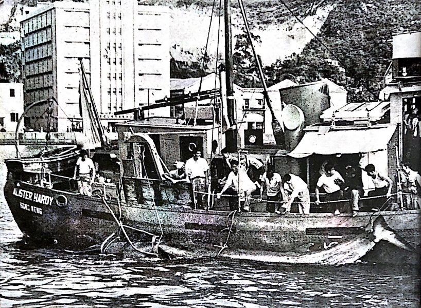1955年夏天,一條年幼的長鬚鯨隨母鯨由南中國海向北方水域遷徙途中,意外和母鯨分開並滯留維多利亞港水域,被發現受困於一碼頭底的木樁之間。其由於過度飢餓至身體衰竭,最終需要進行人道毁滅,屍體被移送到香港仔由香港大學的動物學家處理,其骸骨經保存後於港大校園內展示達35年之久,並於1991年太古海洋實驗室(太古海洋科學研究所前身)成立時佇立其旁側的石灘,多年來守望著南中國海一帶,成為該處保育海洋的地標。