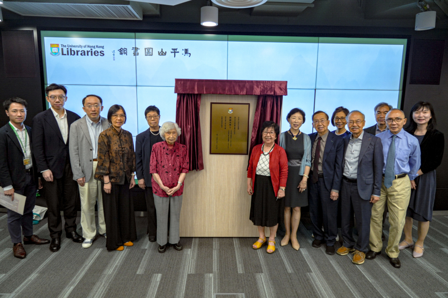 儀式由港大首席信息主管及圖書館館長伍麗娟女士、港大教研發展基金永遠榮譽主席及醫學院榮休教授楊紫芝教授和簡氏家族代表簡麗中博士主禮。其他出席嘉賓包括團結香港基金顧問及中國文化研究院理事曹萬泰先生。紀念匾揭幕後,館方向來賓介紹「馮平山圖書館百年發展計劃」,包括開發特藏跨學科智能搜索平台、融合特藏創新教學、出版古籍善本圖錄及製作館藏延伸文化與創意產品等。